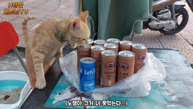 편의점 밖에는 귀여운 노란색 냥이도 보이고...